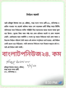 তিনি আরো অভিযোগ করেন, তারা নিয়ম বহিঃভূত ভাবে প্রচারে রঙ্গিন পোষ্টার যত্রতত্র মাইকিং এবং প্রতিদ্বন্দ্বি প্রার্থীদের পোষ্টার ছিড়ে ফেলা ও কর্মীদের ভয়ভীতি প্রদর্শন করে চলছে। এই ব্যাপারে আমরা লিখিত ভাবে জেলা প্রশাসক ও রির্টানিং কর্মকর্তাকে জালালেও তারা প্রয়োজনীয় ব্যবস্থা গ্রহণ করছেন না।