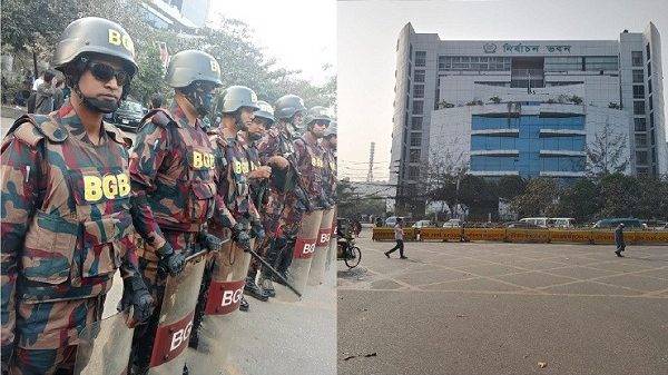 আইন-শৃঙ্খলা পরিস্থিতি নিয়ন্ত্রণ ও নিরাপত্তা রক্ষায় রাজধানীর আগারগাঁওয়ে নির্বাচন কমিশন (ইসি) ভবনের সামনে বিজিবি মোতায়েন করা হয়েছে। রবিবার (১৮ জানুয়ারি) বিকেলে বর্ডার গার্ড বাংলাদেশের (বিজিবি) সদর দপ্তর থেকে এ তথ্য